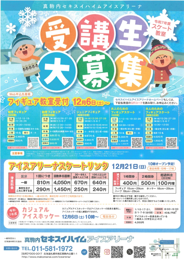 12月6日(土)より、令和7年度スケート教室受講生を募集します。